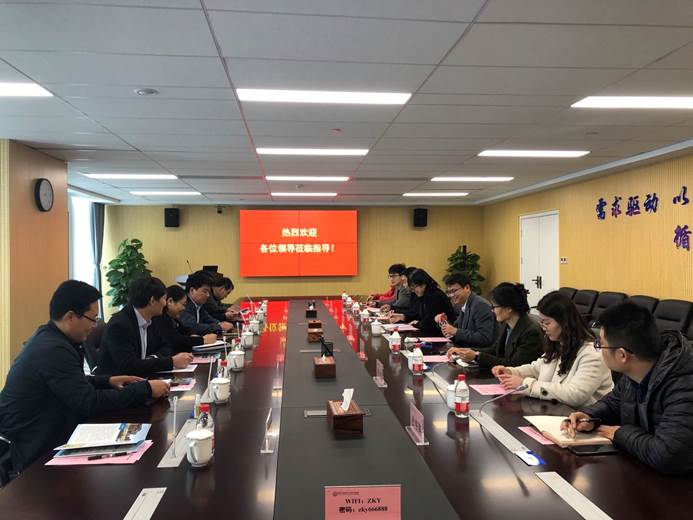 On the afternoon of November 18, 2020, Party Secretary Zhai Xinli and Dean Bai Yan of the College of Chemistry and Chemical Engineering led all members of the leadership team to Zhengzhou Institute of Emerging Industrial Technology (Institute of Process Engineering, Chinese Academy of Sciences, Zhengzhou) for exchange visits and implementation of the cooperation agreement. Nie Yi, vice president of Zhengzhou Institute of Emerging Industrial Technology, received a delegation from the College of Chemistry and Chemical Engineering in the room 305 of Wisdom Valley.