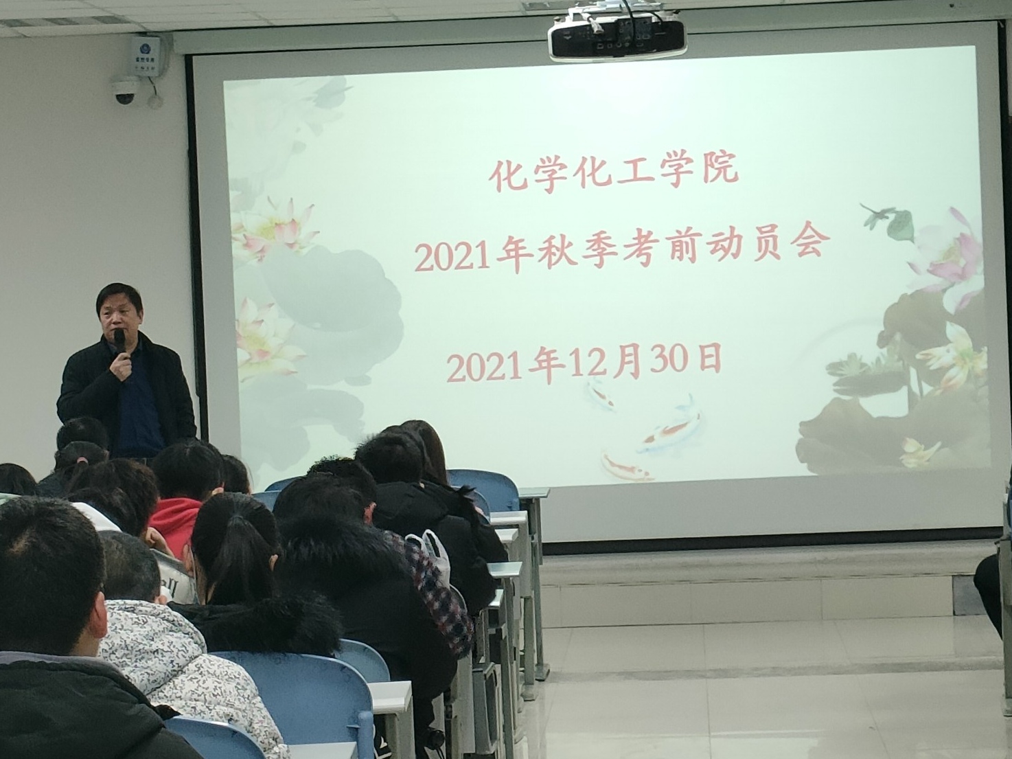 于12月30日在曾宪梓楼601举行化学化工学院秋季考前动员会。化学化工学院党委副书记马文海,2021级辅导员董洁,各班班主任以及2021级全体同学参加此次会议。