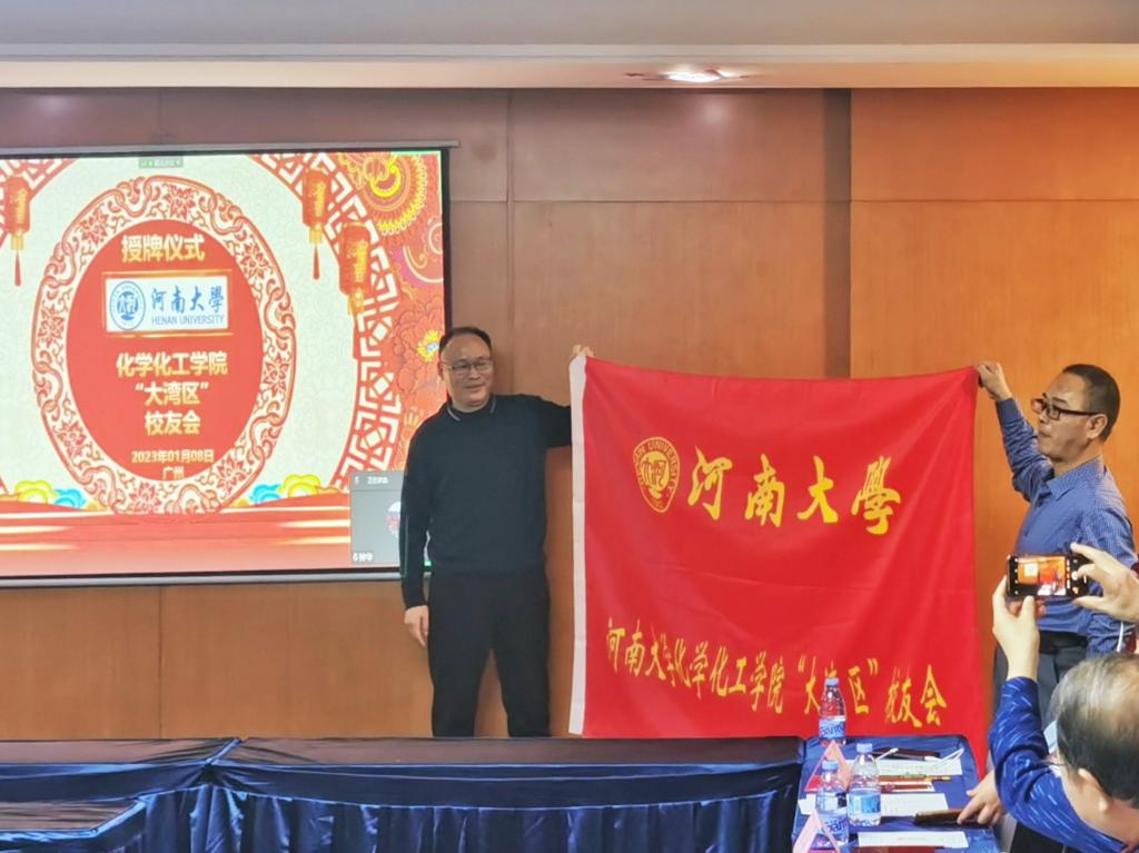 校友总会向“大湾区”校友会授会旗并赠送贺礼。