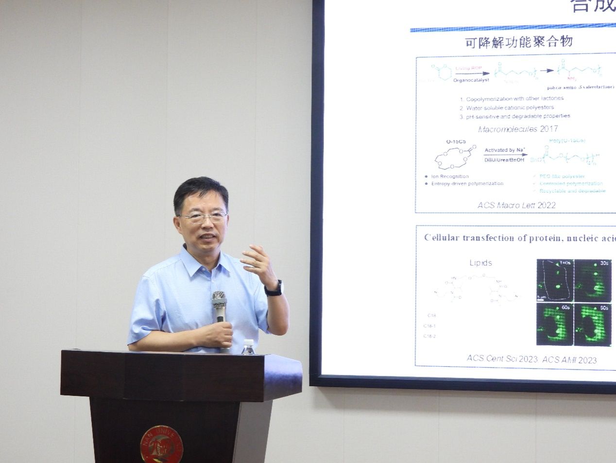 8月27日上午,学院高层次人才及各平台负责人汇报如何围绕学科筑峰和一流学科建设开展工作。国家杰青、院长陈永明介绍了自己的科研进展,从聚合物分子刷-多为可控的单分子纳米材料研究,讲到研究成果在创新疫苗中的应用,该研究获得2024年国家自然基金重点项目立项,树立了科研成果转化应用的榜样;校特聘教授张东娣、省特聘教授王丽、校第四层次人才曹中艳、徐尤智、校百人计划A岗张晓明、河南省工业冷却水循环利用工程技术研究中心主任许英、河南省环境污染控制材料国际联合实验室主任周艳梅、河南省药用植物资源化利用国际联合实验室朱金华、河南省功能材料与催化反应工程研究中心主任丁涛,分别汇报了个人、团队或平台的科研及建设情况。陈永明从团队建设、教师发展、人才培养和学院管理四个方面做了总结,并解答了代表在分组讨论中提出的问题。