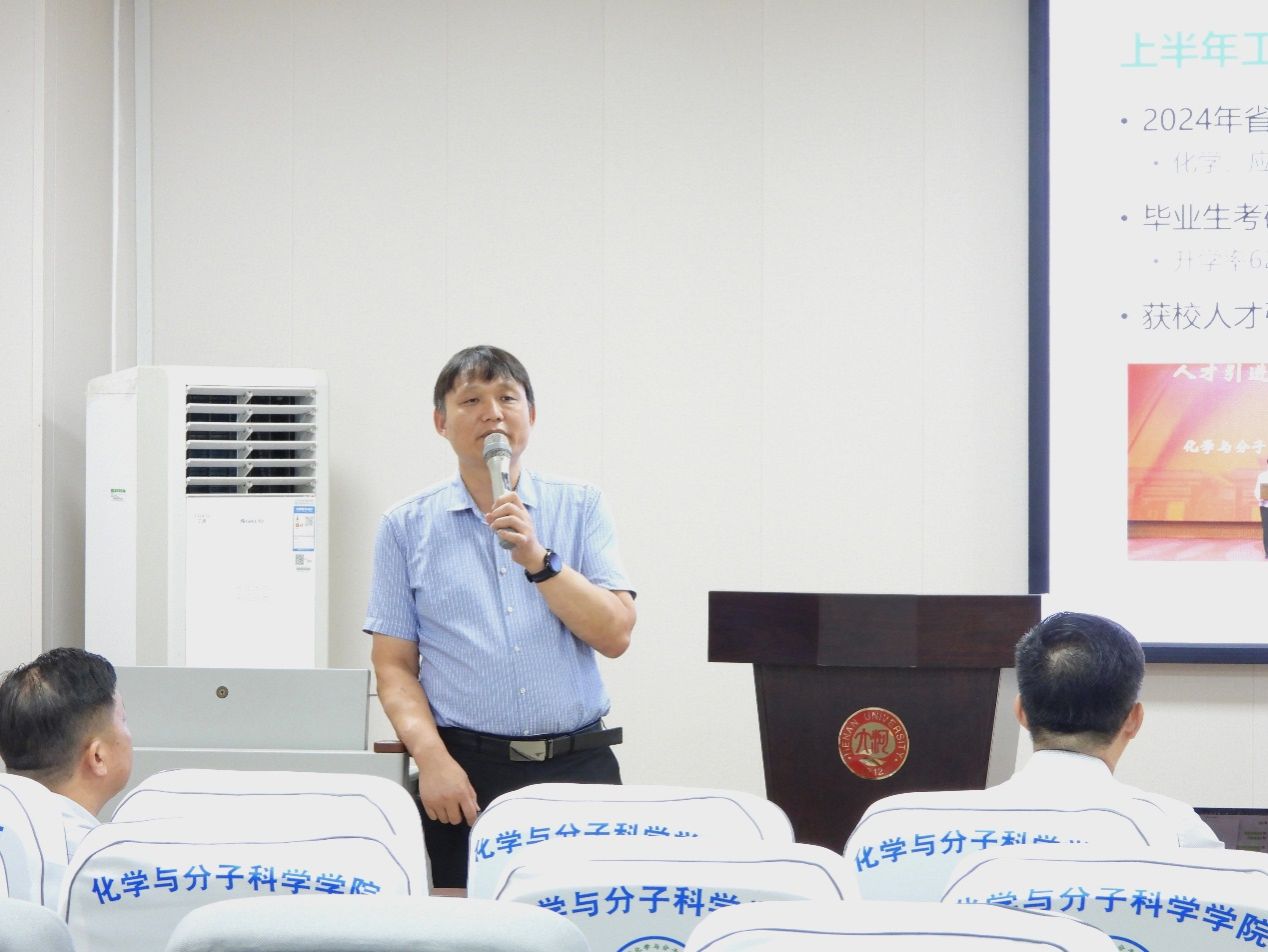 乔梁首先充分肯定了学院在暑假期间召开工作会议对下一步如何落实学校要求,明确学院发展方向具有重要意义。一分部署,九分落实,如何把“路线图”变成“施工图”,如何把“时间表”变成“计程表”,大家要主动适应创新发展模式,要能为、要为、还要有办法为。学院领导班子谋划发展时占位要高,目光要远,要狠抓落实,强化执行、苦干实干;学院教职工也要立足本职工作,紧跟时代发展、紧密围绕学科建设目标做科研教学。学院师生团结一心,奋勇拼搏才能实现创建化学一流学科既定目标,为我校“双一流”“双航母”建设做出贡献。
