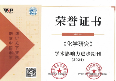 近日,维普《中文科技期刊数据库》正式公布了“学术影响力进步期刊(2024)”获奖名单,《化学研究》获此殊荣,该荣誉的取得标志着期刊学术影响力得到显著提升。 “学术影响力进步期刊(2024)”奖项是维普《中文科技期刊数据库》为了表彰部分期刊在学术领域的卓越贡献而特别设立的,以鼓励和激励更多的期刊在学术传播和知识创新上不断前行。