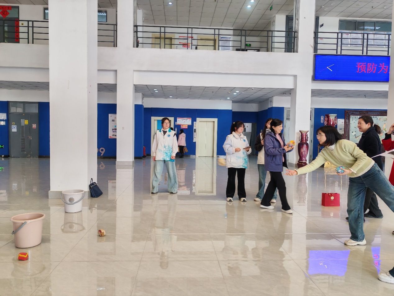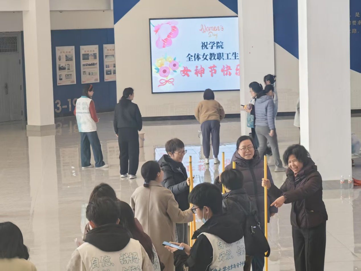 获得集体跳绳三等奖,部分老师还参加了毽球和呼啦圈的个人项目比赛。下午4点,学院和研究院的全体女教工齐聚学院一楼大厅,参加学院工会组织的庆祝“三八”节趣味活动。