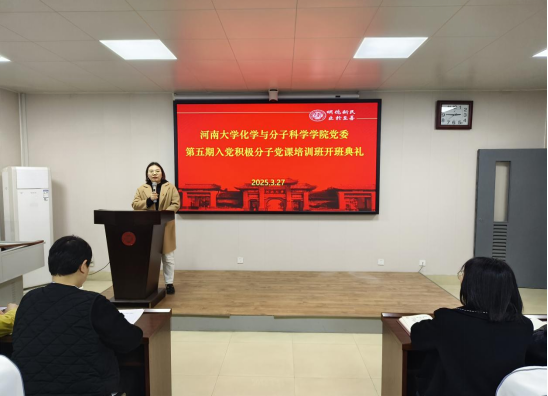党委第五期入党积极分子党课培训班开班典礼于学院二楼报告厅隆重举行。学院党委书记常凤香、党委副书记马文海、纳米科学与工程研究院副主任张俨娜、本期培训班班主任、学院党委办公室主任宁攀、部分学生党支部书记以及全体培训班学员参加典礼。开班典礼由马文海主持。