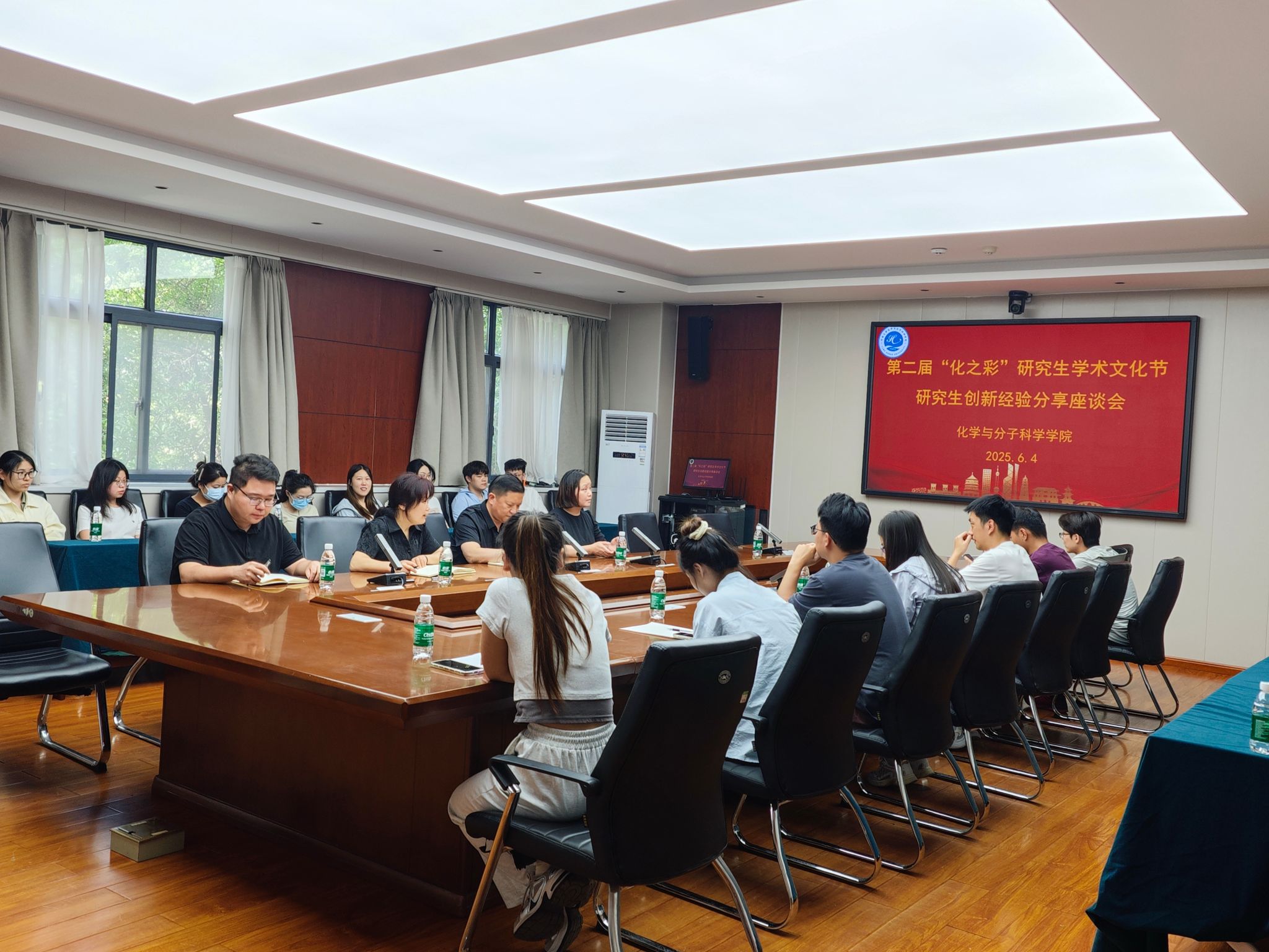第二届“化之彩”研究生学术文化节之研究生创新经验分享座谈会于2025年6月4日在学院220会议室召开。学院党委副书记马文海、副院长屈建莹、研究生辅导员及部分研究生代表参与座谈。座谈会由屈建莹主持。