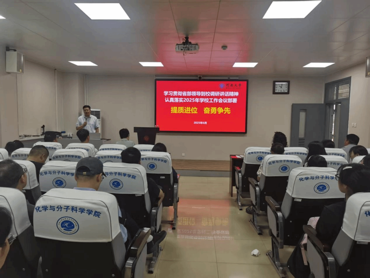 龚森传达学习习近平总书记考察河南重要讲话精神,系统解读了省部领导同志近期到我校调研时的讲话精神与核心要点,并带领导大家再次学习领会学校2025年工作会议精神。他强调,要把学习好、领会好、贯彻好习近平总书记考察河南重要讲话精神作为当前和今后一个时期的重大政治任务,深学细悟;要准确理解和把握省部领导调研讲话精神,切实把思想和行动统一到省委省政府、学校党委行政决策部署上来,紧扣“提质进位”主题,践行“强理振文、新工新医”办学新主线,围绕学校“双一流”和化学学科建设、人才培养等探索具体问题的解决路径,贯彻落实2025年学校工作会议部署,凝心聚力,推动化学学科高质量发展。