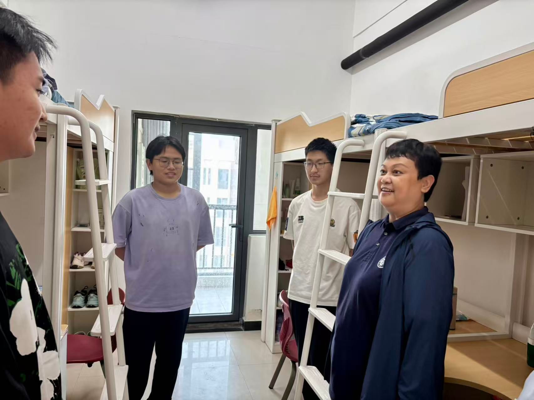 31日晚,学院领导老师分别在郑州校区和金明校区走访慰问新生。党委书记常凤香带队在郑州校区,执行院长徐元清带队在开封金明校区,老师们走进一间间新生宿舍,与同学们亲切交谈。询问新生们的入住适应情况,细致查看住宿环境,叮嘱大家注意用电安全与宿舍卫生,尽快熟悉校园生活、融入集体。温暖的交流让新生们感受到学校与学院的贴心关怀,也进一步增强了他们对新环境的归属感。