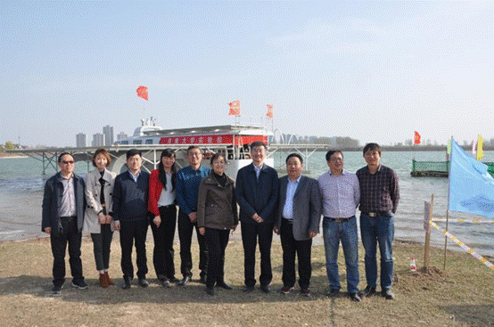 张芳一行首先来到我校位于开封市汴西湖北岸的试验基地,考察了“大河1号”全太阳能无人驾驶水生态保障船。在观看了视频宣传片后,重大科技专项负责人王新海博士分别从项目简介、已经取得的主要成果、项目目标对照清单和目前存在的问题与挑战等四个方面进行了汇报。随后,调研组乘坐“大河1号”在西湖北岸至东京大桥段进行了航行,考察了水质保障、离网供电、航道指挥和环境监测四大子系统和水生态大数据中心。