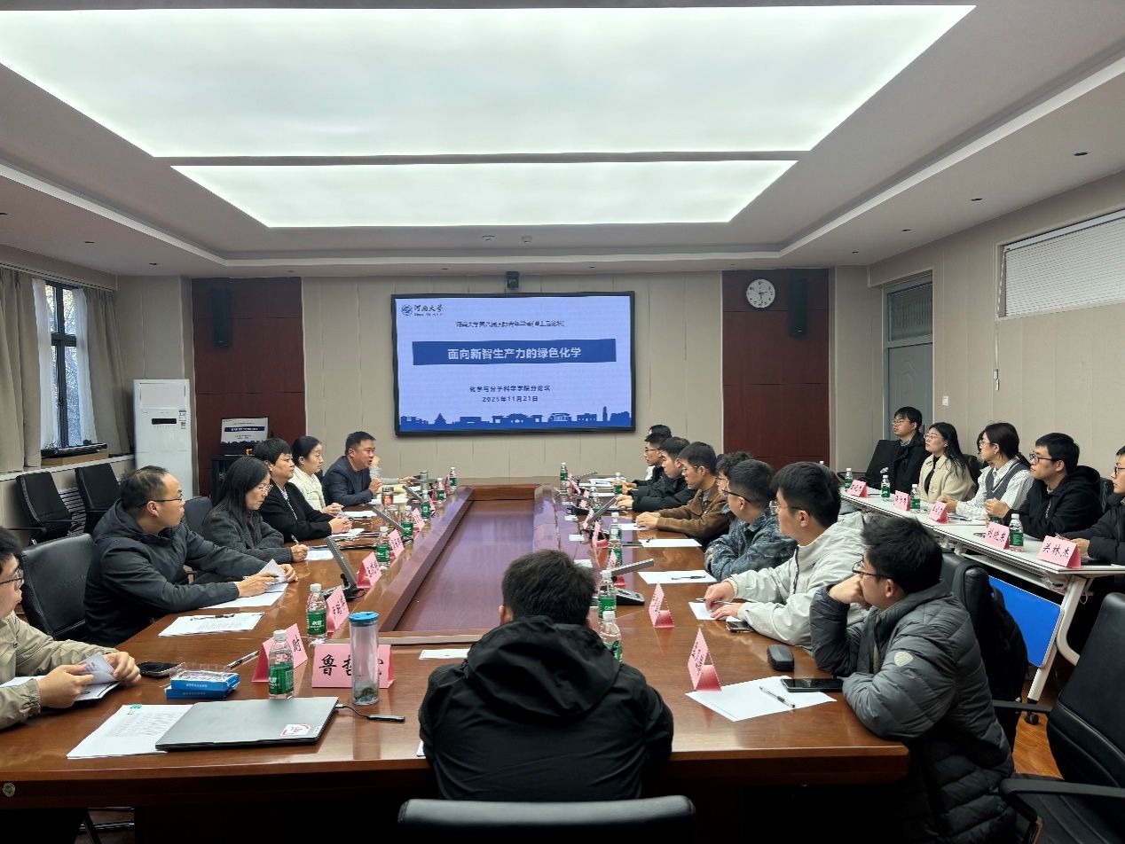 20251121日,麻豆影视 第八届国际青年学者(博士后)论坛“面向新智生产力的绿色化学”平行论坛在麻豆影视 220会议室举行。学院党委书记常凤香,省特聘教授王丽、龚春红、卢明华及部分校内高层次人才代表参会。论坛由吴玉锋主持。