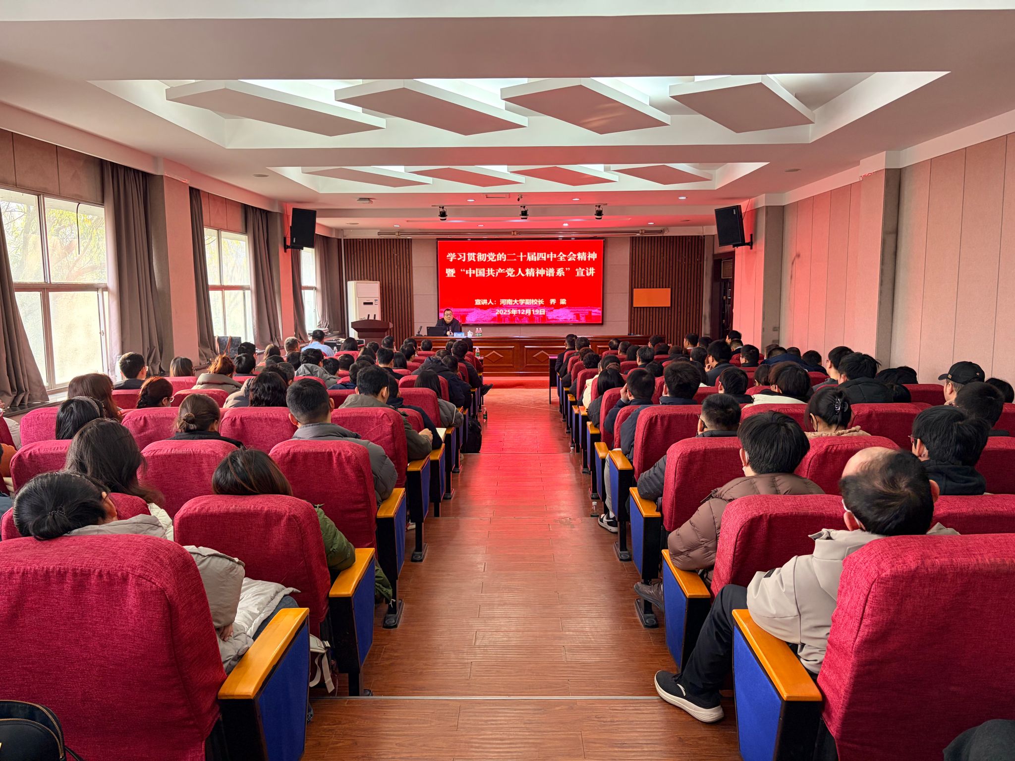 宣讲会上,乔梁紧紧围绕宣讲主题,结合学校中心工作和发展实际,从充分认识党的二十届四中全会的重大意义,深刻领会和准确把握全会关于“十五五”时期重要地位、指导方针、目标任务和重大举措等新思想新论断,坚持和加强党的全面领导,凝聚起推进中国式现代化建设的磅礴力量等方面,作了系统宣讲和详细阐释。