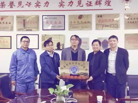 2019年11月6日下午,学院党委副书记马文海、副院长刘学军、徐元清等一行到濮阳市联众兴业化工有限公司交流,看望慰问在公司挂职的博士服务成员杨浩老师,并探讨了院企合作事宜。