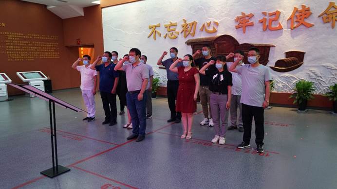 最后,在党员政治生活馆的宣誓厅,全体党员胸带党徽,举起右拳,面对党旗庄重宣读入党誓词,并共唱国歌,气氛庄严神圣。宣誓仪式结束后,各个党员在共产党员承诺书上签名并领取承诺书留念。
