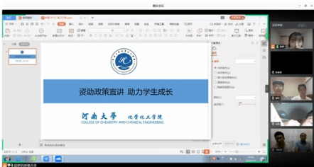 为进一步加强建档立卡贫困家庭持续深入了解国家的资助政策,7月7日下午,化学化工学院通过腾讯会议召开资助政策宣讲视频会议。本次会议由贷款资助负责人、2018级辅导员、2019级辅导员田梦主持,化学化工学院资助负责人、化学化工学院建档立卡学生以及家长与会。