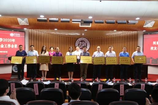 2019度优秀校友与基金会工作先进单位。化学化工学院党委书记、学院校友与基金工作领导组组长乔梁出席会议并上台领奖。