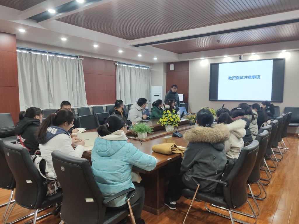 开展面试培训讲座。教育实习指导老师胡卫平及需面试的学生于学院220会议室参加讲座。