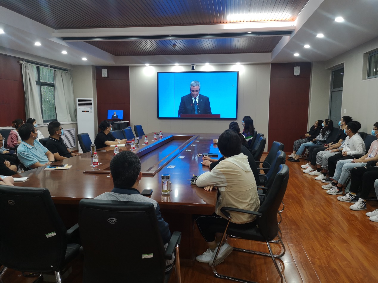 郑州校区启用仪式在郑州校区九章学堂举行。化学化工学院院长柏䶮带领学院领导班子成员和师生代表在学院220会议室共同收看现场直播,庆祝我校郑州校区正式启用。