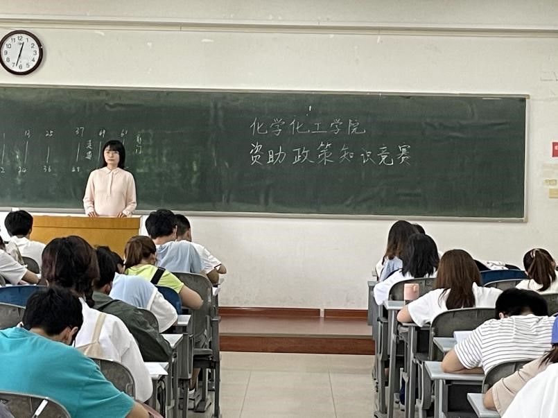 为提高大学生的诚信意识和责任意识,全面宣传党和国家的学生资助政策,充分发挥资助育人功能,推动学院资助工作持续、健康发展,化学化工学院积极落实学校《关于开展资助政策及诚信教育宣传月活动的通知》,开展以“国家资助,伴我成长;践行诚信,筑梦未来”为主题的系列诚信教育宣传活动,并于6月8号下午在综合教学楼7202教室举行了资助政策知识竞赛。