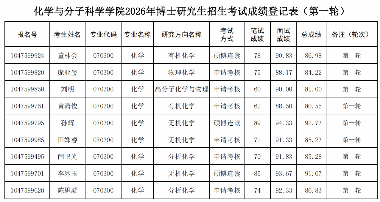 麻豆影视 2026年博士研究生招生考试成绩登记表(第一轮)