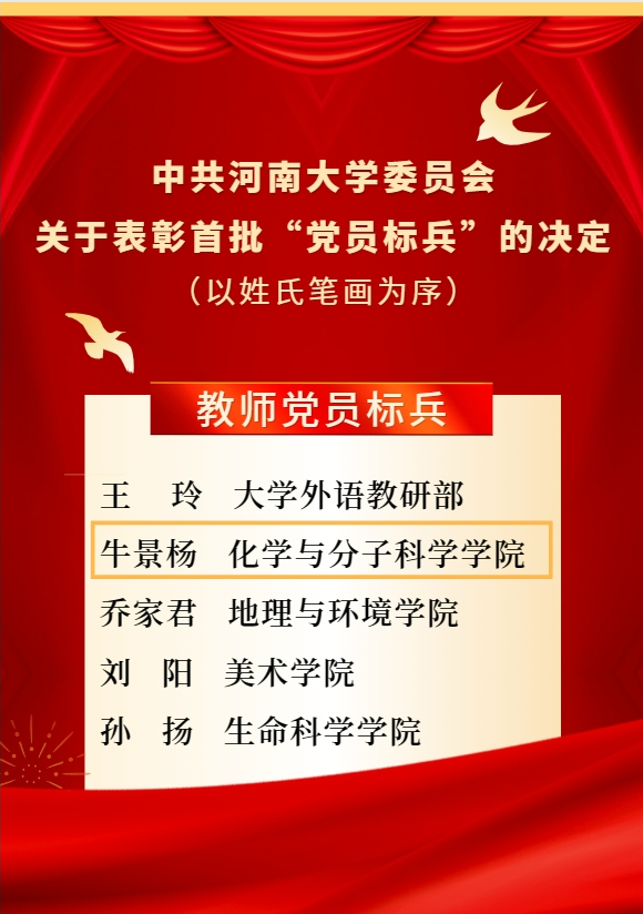 作为一名共产党员,牛景杨坚持以习近平新时代中国特色社会主义思想为指导,牢记为党育人、为国育才初心使命,树立“躬耕教坛、强国有我”的志向和抱负,带头弘扬和践行教育家精神。从教30余年来,他把个人教育科研事业融入党和人民的事业,践行初心,甘为人梯,以高度的政治责任感和历史使命感,为党和人民贡献力量。