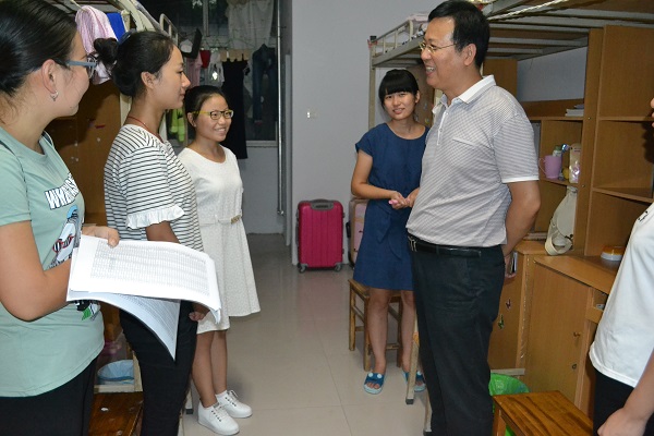 党委书记方蒙、党委副书记宋立华、院长牛景杨、副院长杨更须、柏龑、张普玉等一行人走进新生宿舍,为新生送去亲切关怀。