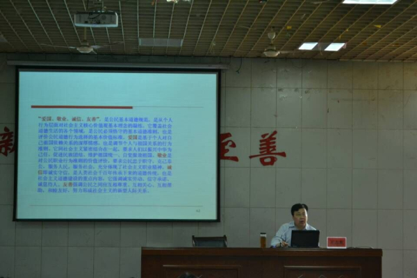 王志乾分别从国家、社会、个人三个层面对“社会主义核心价值观”进行全面深入的解读。他指出,党的十八大以来,我国高度重视树立和践行社会主义核心价值观。“富强、民主、文明、和谐”是国家层面的价值目标,“自由、平等、公正、法治”是社会层面的价值取向,“爱国、敬业、诚信、友善”是公民个人层面的价值准则。他着重讲解了个人层面的深刻意义。他强调,天下兴亡,匹夫有责,“爱国、敬业、诚信、友善”是每个公民都应恪守的准则。而少年强则国强,少年富则国富。作为大学生,更应该以振兴中华为己任,树立正确的人生观价值观;更应该严于律己、克己奉公,服务人民、服务社会;更应该做到勤学、修德、明辨、笃实。最后,王志乾带领入党积极分子重温党章的重要内容,为同学们更好地学习党章明确方向。