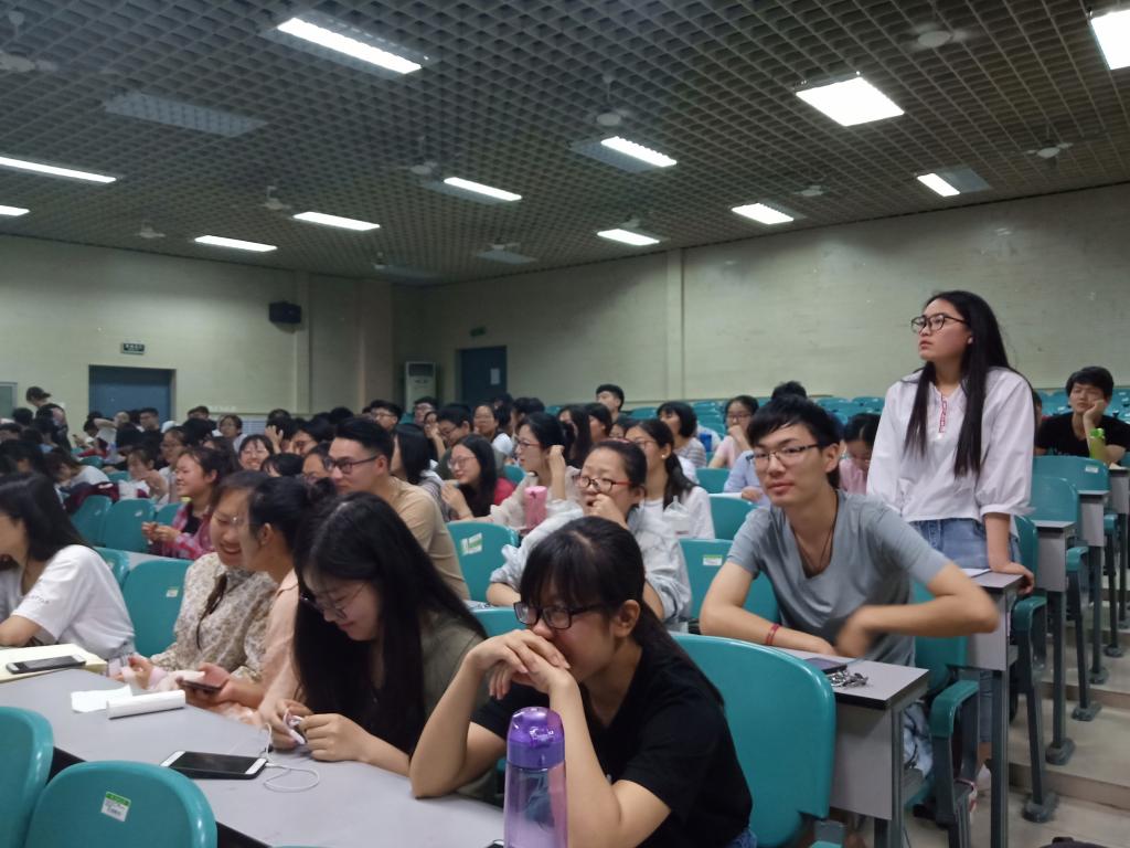 稍后,提问环节中,六位优秀学生代表再次为大家的各种问题进行解答,包括无科研经历怎么办、是否直博、课题研究选择等等,解答细致,会场交流融洽,同学们获益匪浅。