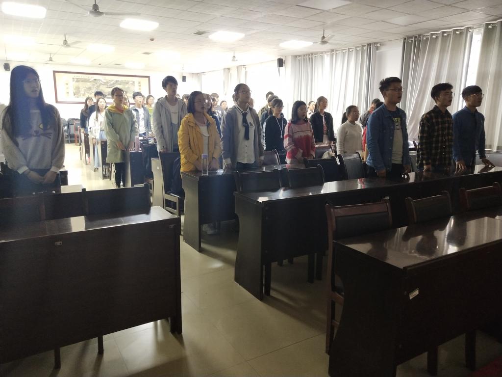 会议伊始,全体师生起立奏唱国歌。之后,全体青马班成员聚精会神地观看视频。视频中,习近平总书记回顾了五四运动的历史,重温了五四精神,并讲述了五四运动的意义和影响;他还着重强调青年要爱党、爱国、爱人民,充分发挥其先锋队的作用,站在革命的前端,勇做走在时代前列的奋进者、开拓者、奉献者。