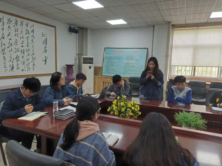 会议围绕如何开展团日活动进行讨论和规划,各班团支书就本班情况依次发表了对活动的意见。各班的活动形式各具特色,有组织同学去参观故居、烈士陵园,举办诗歌竞猜,观看爱国教育短片,玩游戏等等。同时大家也注意到要对开展团日活动的待办事宜和注意事项更加细致化,活动前应当提前做好准备并确保同学安全,要真正贯彻落实社会主义核心价值观。团支书们畅所欲言,提供了新颖的思路和独到的见解。