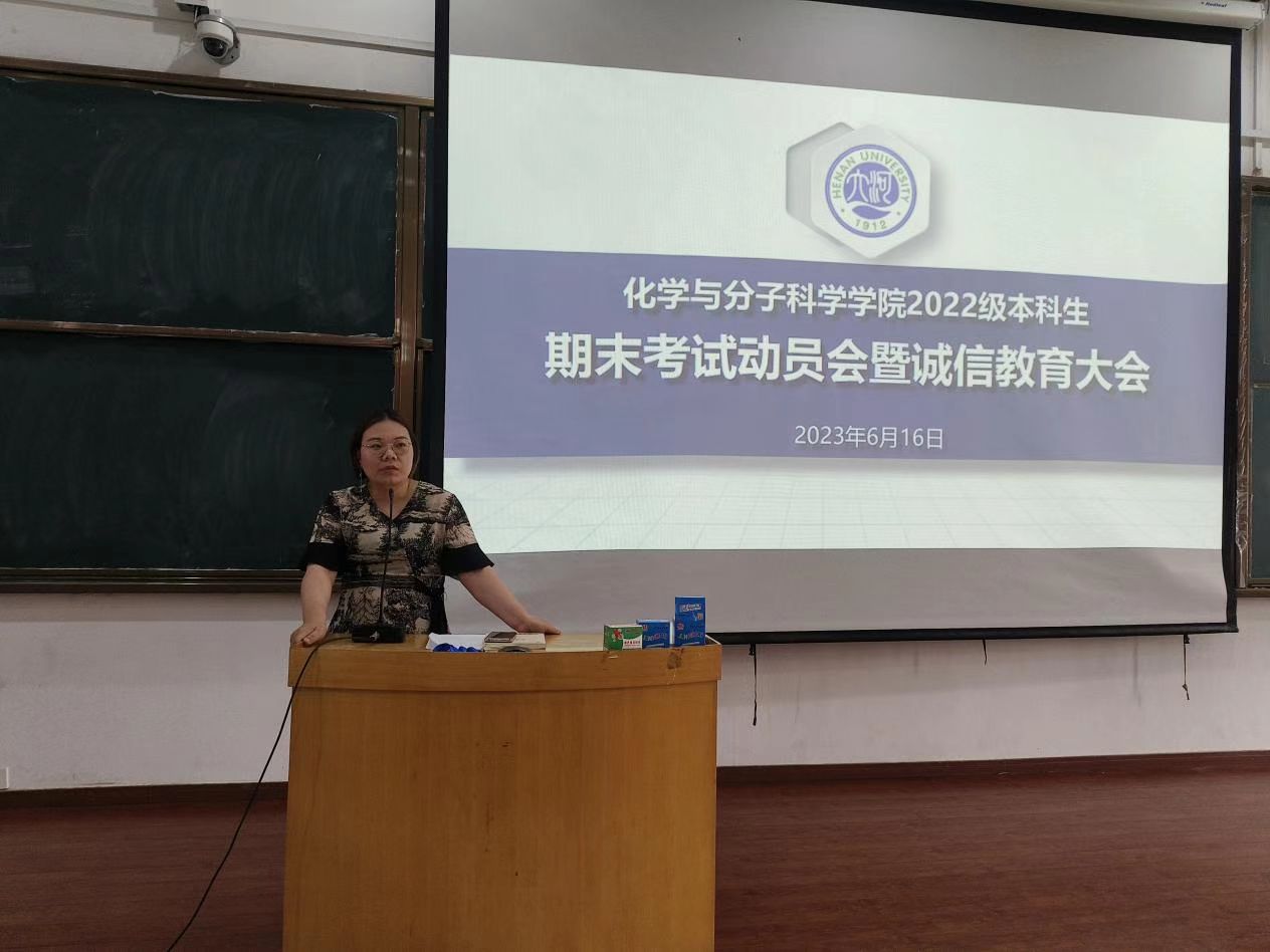2022级本科生在综合楼6305教室召开期末考试动员会暨诚信教育大会,2022级全体本科生参加,学院党委办公室主任、2022级辅导员宁攀主持会议。