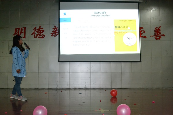 本次心理运动会分为趣味游戏、心理解析、颁发奖状三个环节。首先,瞎子背瘸子、刮鼻子、向左向右转、报纸载人、圆球游戏五个趣味游戏的顺利进行,使同学们在欢快轻松的游戏中认识到了分工合作、承担责任、自我认错、协调统一、团结配合的重要性。同学们热情响应,踊跃参与,观众的掌声和欢呼声此起彼伏,现场气氛热烈。接着,学习部部长陈珂通过书籍《拖延心理学》和TED演讲介绍了拖延症的表现、危害及解决拖延症的方法。并给出“关注时间,专心致志”的建议,来帮助各位同学摆脱“拖延症怪圈”。随后,在同学们的强烈要求下,本次活动进行瞎子背瘸子的加赛环节,激烈的比赛将现场气氛推向高潮。最终,文艺部荣获第一,办公室紧随其后,组织部位居第三。此次活动在一片欢声笑语中圆满落幕。