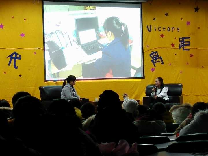 冰冷的空气,细密的雨,丝毫挡不住同学们赶来的脚步。满满的座位席,热烈的掌声,更是凸显了同学们对马老师的喜爱。首先,主持人廖颖玲对同学们的到来表示欢迎,马老师也表示非常感动。开场一段精美的短片让同学们对马老师有了更多的了解,主持人以马老师的学生生涯展开话题,她那活泼又不失分寸的话语,随意而又不失庄重的举止很好地活跃了气氛,马老师幽默风趣的回答更是博得阵阵掌声。尤为精彩的是,马老师以“谈恋爱”为喻,完美形象的回答了大家“考证有没有用”的问题;她根据亲身经历及“力的分解”原理贴切地分析了跨专业考研的利弊。在谈及求职工作时,马老师分享了很多的经验,并给出了一些有用的建议。马老师讲述的几个难忘的故事,也使同学们深刻地感受到了老师的辛苦与不易。然后,马老师的好友及学生通过视频对她诉说心里话并送上祝福。对于他们所说的才女,可爱善良,干练,做事有条不紊,责任感强等评价,马老师谦逊地说那都是溢美之词,自己还有很多不足,还有很大的发展空间。她还表示自己虽表面安静不活跃,其实还是很好亲近的,她很乐意同学们可以多找她谈心。最后还聊到了老师的浪漫爱情,当老师的爱人捧着花出现时,全场一片欢呼与掌声。主持人也送上青协准备的礼品,并祝福老师幸福快乐,早日有个小宝宝! 活动最后是抽奖环节,到场的同学都收到了青协准备的小礼品,还有一些幸运同学获得了丰厚的大奖,访谈在大家的欢呼声中圆满结束。