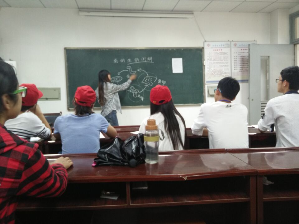 9月10日下午,招募复试工作如期进行。此次考核的主要内容为现场授课,以考查面试者的讲课方式、课堂把握程度及应变能力等。“蚕的生长周期”、“简单电路”、“花、果、叶”……讲解课程贴近小学教学大纲要求,内容丰富有趣。考虑到支教对象是知识匮乏的小学生,如何讲解使内容浅显易懂是面试者的一大挑战。同时,考核现场还有许多兴趣盎然的同学充当小学生,以他们的思维提问问提,活跃课堂气氛,使面试课堂更加逼真,以此考验“老师”。面试者也临场不惧,拥有独特的授课方法及处理问题的方式,最大程度上来展示自己的教学能力。