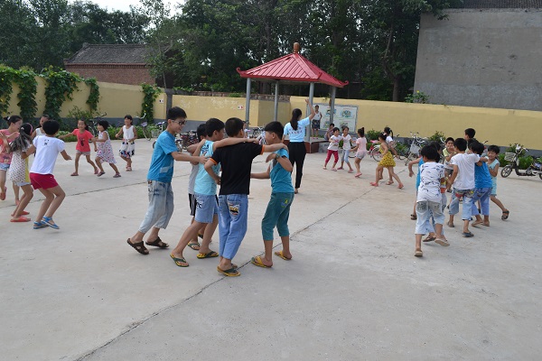 (深受孩子们欢迎的志愿者路瑶课间带领大家一块做游戏)