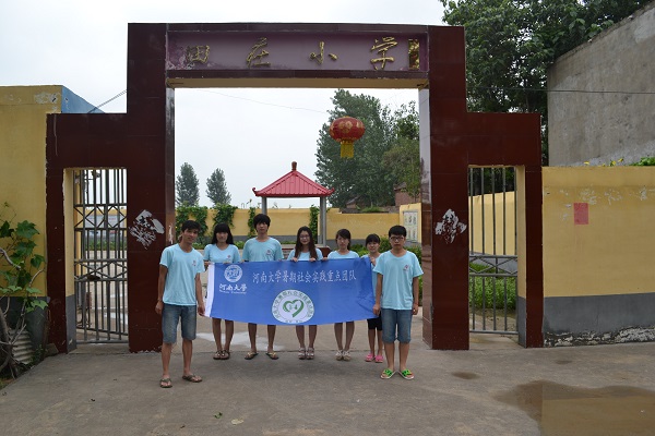 (志愿者们在田庄小学门口合影)