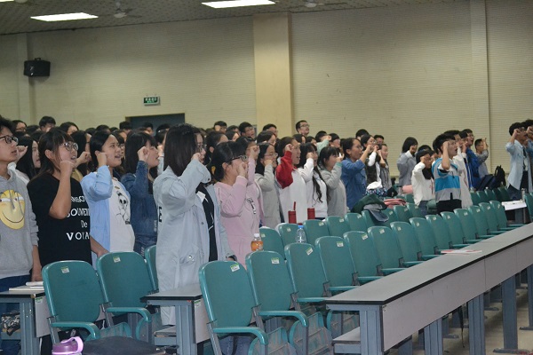 最后,宋立华发表讲话。宋立华对新老团员提出以下几点要求和希望:一,爱校护校,积极响应共青团的号召,踊跃参加爱国主义教育;二,珍惜青春年华,锐意进取,充分利用各种舞台不断提高自身的综合素养;三,做一名合格团员,不断提升自我,积极向团组织靠拢。