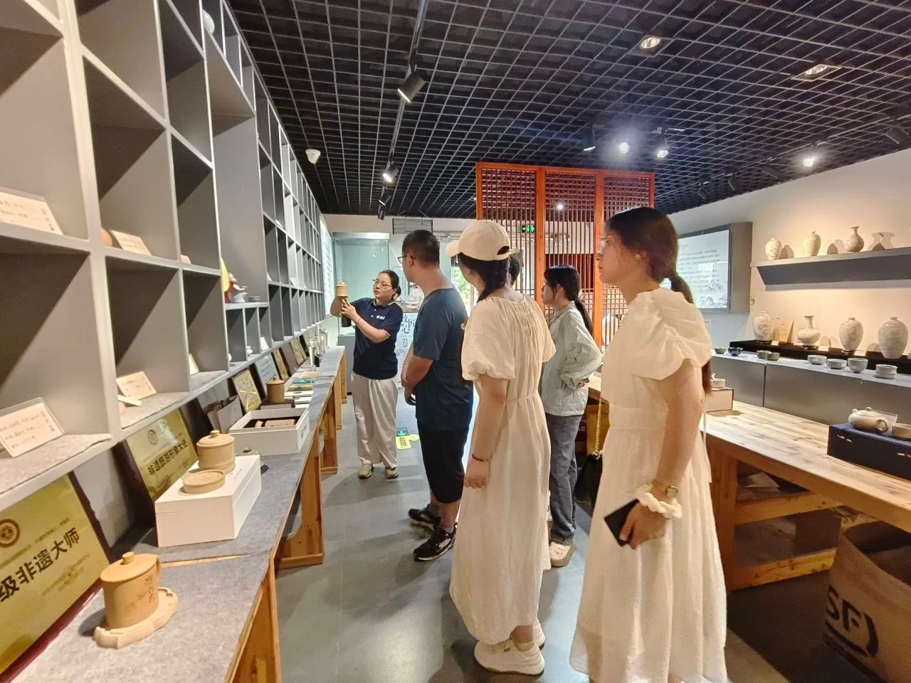 团队前往登封窑复兴基地,在讲解员的带领下,我们首先参观了销售展览馆。在讲解员的细致讲授下,成员们了解到“登封窑”是中原地区民窑系最具代表性的窑口之一,出现有黑瓷、白瓷、黄瓷、花瓷等。其中,白瓷中的珍珠地这一技艺深深的吸引成员们的眼球,使成员们对瓷器有了全新的认知。同时成员了解到是现任传承人李景洲李老先生使失传达千年之久的登封窑历史名瓷白釉珍珠地划花得以恢复,这种传承不守旧,创新不忘本的精神深深地感染着我们,使成员们对推动优秀传统文化创造性转化和创新性发展有了更深一步的认识。