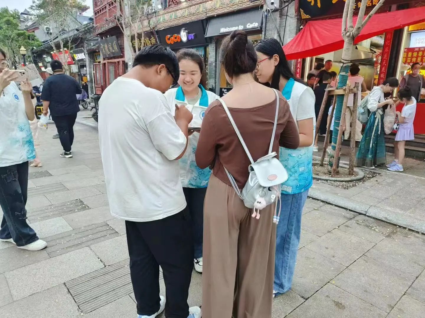 在前期充足周密的准备下,团队成员来到开封市鼓楼文化广场和书店街以及周边区域,通过发放宣传单、现场讲解、展示汴绣作品等方式,向公众介绍汴绣的历史、工艺和文化价值。同时,团队成员们也收集了公众对汴绣文化的了解程度、兴趣点以及对汴绣传承与发展的建议和意见。在活动中,团队成员向市民们介绍汴绣有关的知识,呼吁大家加入到传承保护汴绣的行列中来。