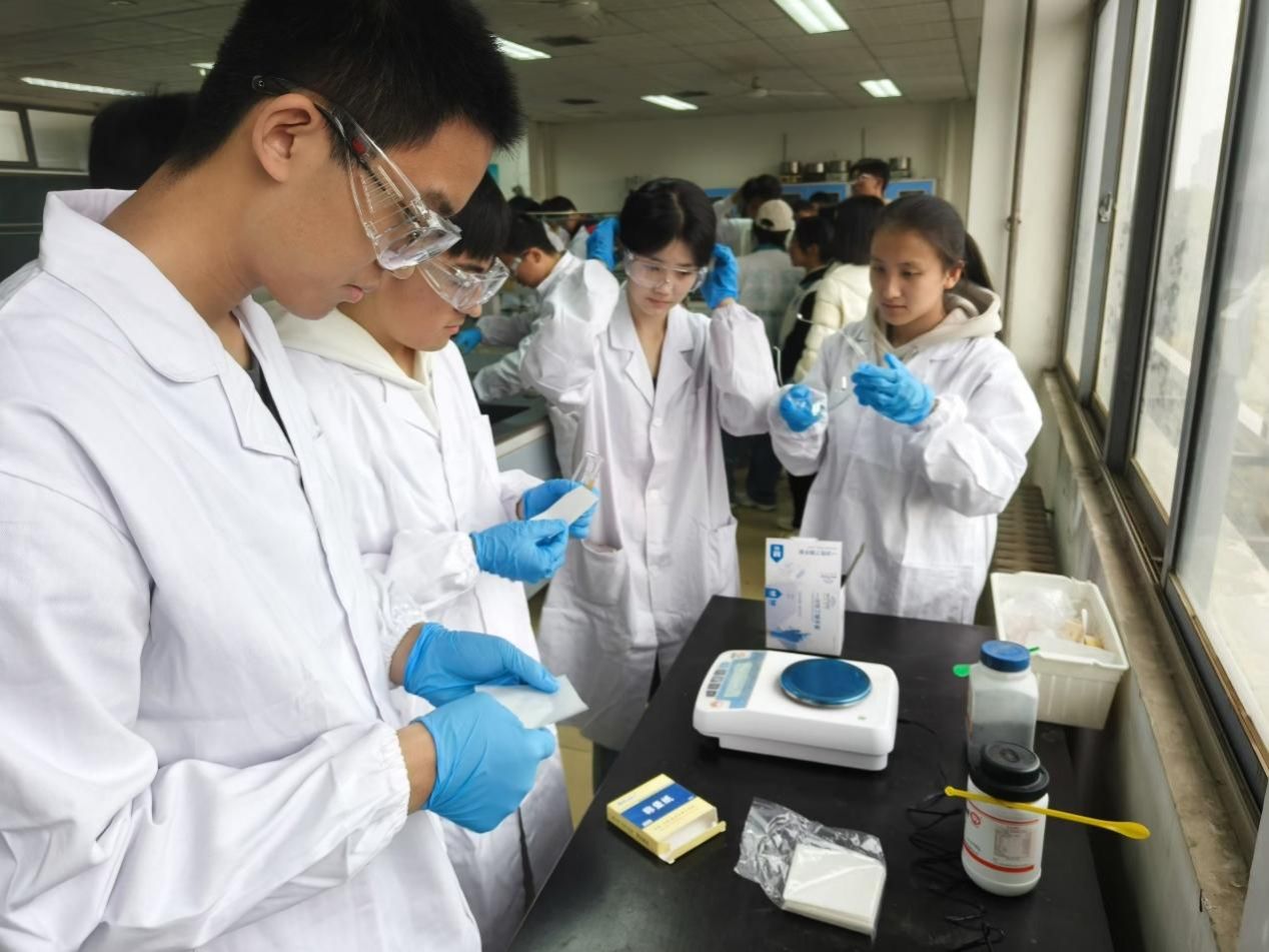 专业教师张超博士和李梦华博士分别为学生们详细讲解了“醋酸铬(II)水合物制备”和“乙酰水杨酸的制备”两个实验的理论基础、操作流程、安全事项及仪器使用。理论课程结束后,学生们在老师的指导下进行实验操作。尽管实验过程较为漫长,学生们依然保持了高度的专注和热情,积极寻求实验结果,体现了他们高度的团队精神和对化学实验的浓厚兴趣。