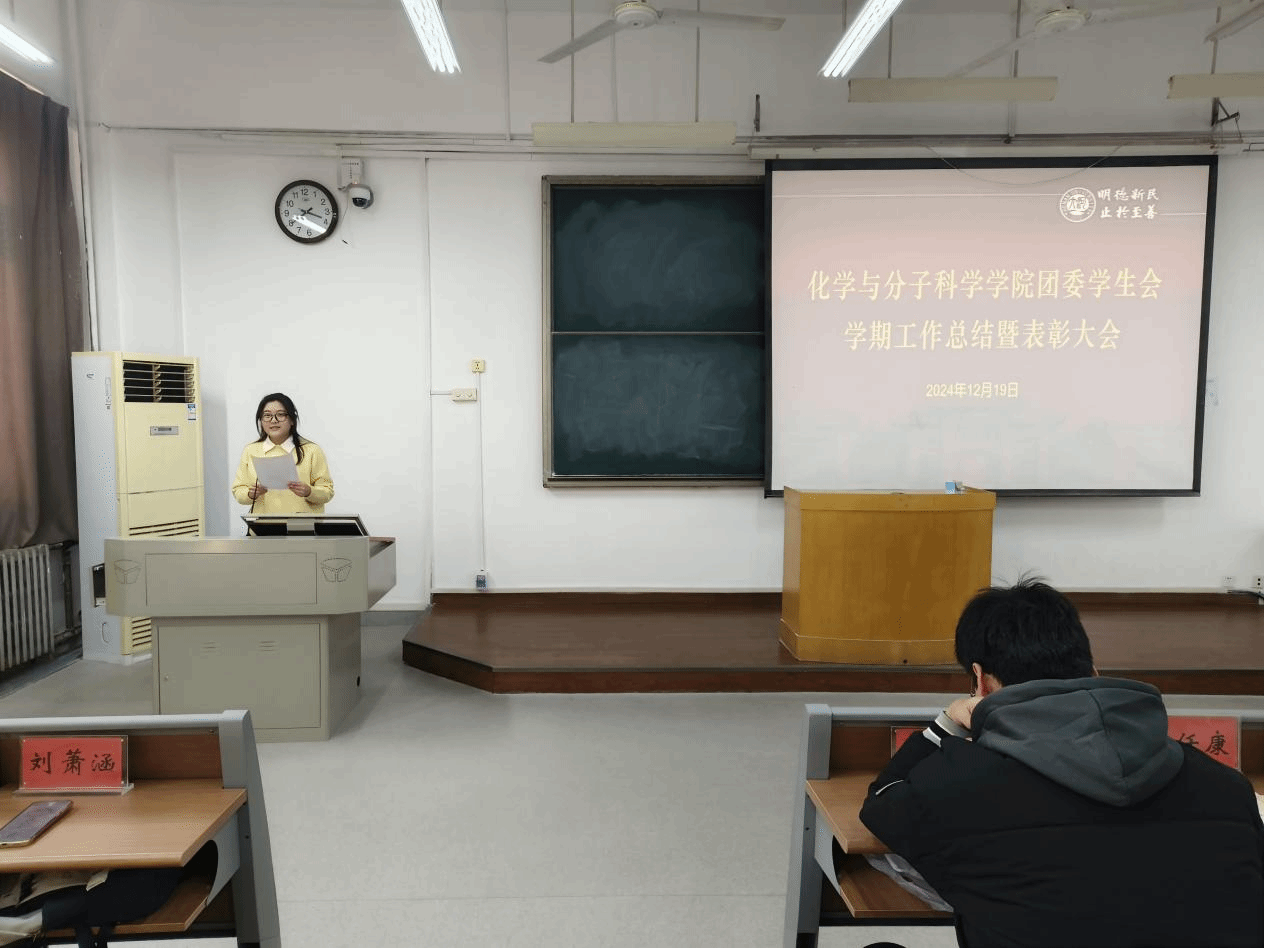 于12月21日在综合教学楼6201举办了团委学生会学期工作总结暨表彰大会。组织部主席林菲儿主持此次大会,推动大会流程有序进行。