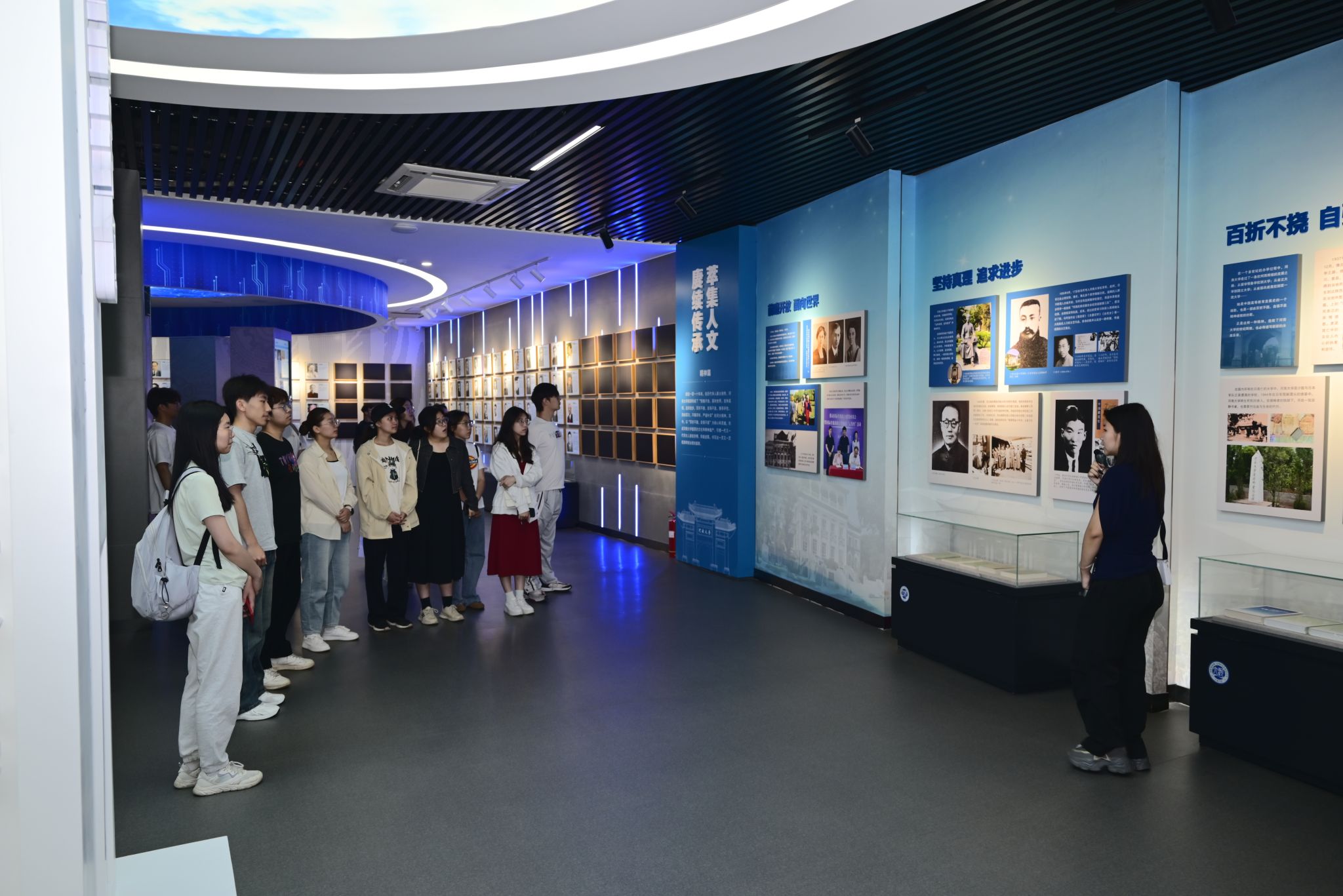 的深厚底蕴和独特魅力,体会其深厚的历史底蕴和文化内涵。随后,学员们参观了群星荟萃厅、大学精神展示厅,去了解我校杰出师生的光辉事迹,感悟他们身上所展现的百折不挠、自强不息的精神品质。最后,学员们在校史馆的电子留言板上留言,表达对学校未来发展的美好祝愿,并合影留念。