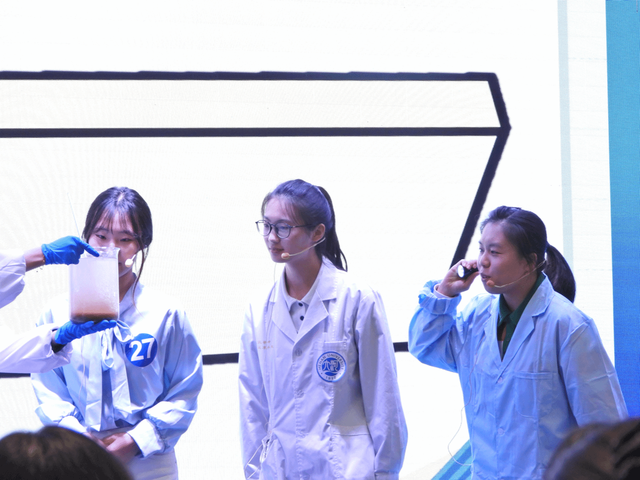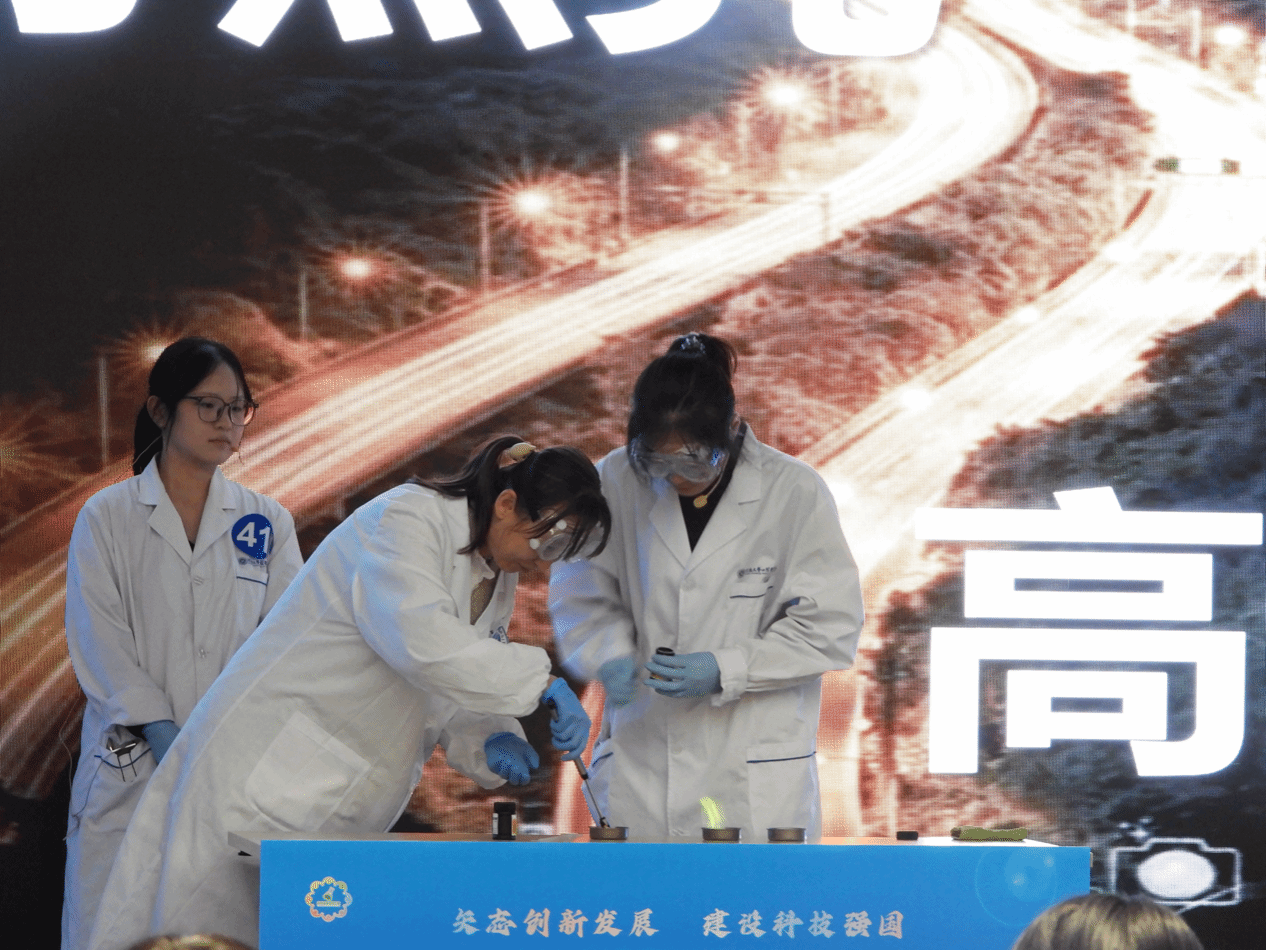 在汇演活动中,各参赛队伍灵活运用科学原理与道具,精心设计角色与故事情节,将晦涩难懂的科学概念直观生动地呈现出来,回答一个个生活之问,让科学素养指导生活。在这里,科学不再是冰冷的公式和枯燥的理论,而是一个个生动有趣的实验,激发着人们对未知世界的好奇与向往。其中,《“点豆成金”——用豆腐魔法净化污水》作品借用《本草纲目》中卤水点豆腐的原理,通过精巧的实验设计,展示了其在治理污水中的应用价值,表明从传统文化到日常生活再到环境保护,化学知识无处不在,体现了我校学子深厚的化学素养。本次活动不但向大众展示了科学独特的魅力,还增强了坚持科技强国的信念,让科学之风吹向每一个角落。