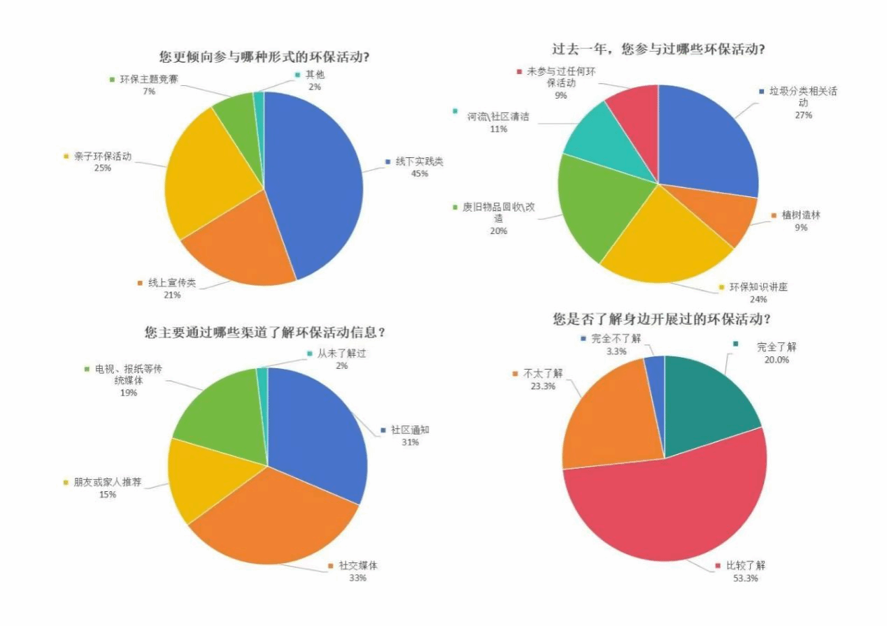 最后,志愿者们与游客一同在横幅签下名字,在横幅上落下姓名的这一刻,不仅是对本次环保活动的参与印记,更承载着每个人对守护自然的真诚期许与坚定立场。活动后,志愿者们全面分析与反思了问卷结果。问卷发现大多数游客对于比较了解环保活动,且有很大意愿参加线下的公益环保活动。