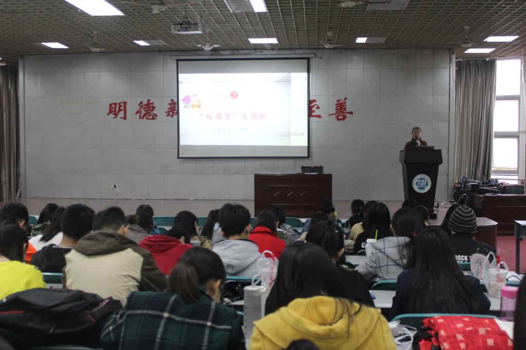 10月25日中午,在学院学术报告厅开展了大学生“校园贷”专题教育讲座,近350余名学生参加讲座。专题教育讲座由王路娟讲解。王路娟作了以“防范校园贷”为主题的专题讲解,分别从校园贷各类型的典型案例、大学生不良借贷问题的现状及危害、如何树立正确的消费及信用观念、自我反思等四个方面进行讲解。通过讲解校园贷的产生背景、发展过程,校园贷的不合理使用所引起的犯罪和自杀事件、校园贷申请过程中的各种陷阱等典型案例,使同学们深刻了解到校园贷的各种细节,帮助提高警惕心,加强自我保护能力。