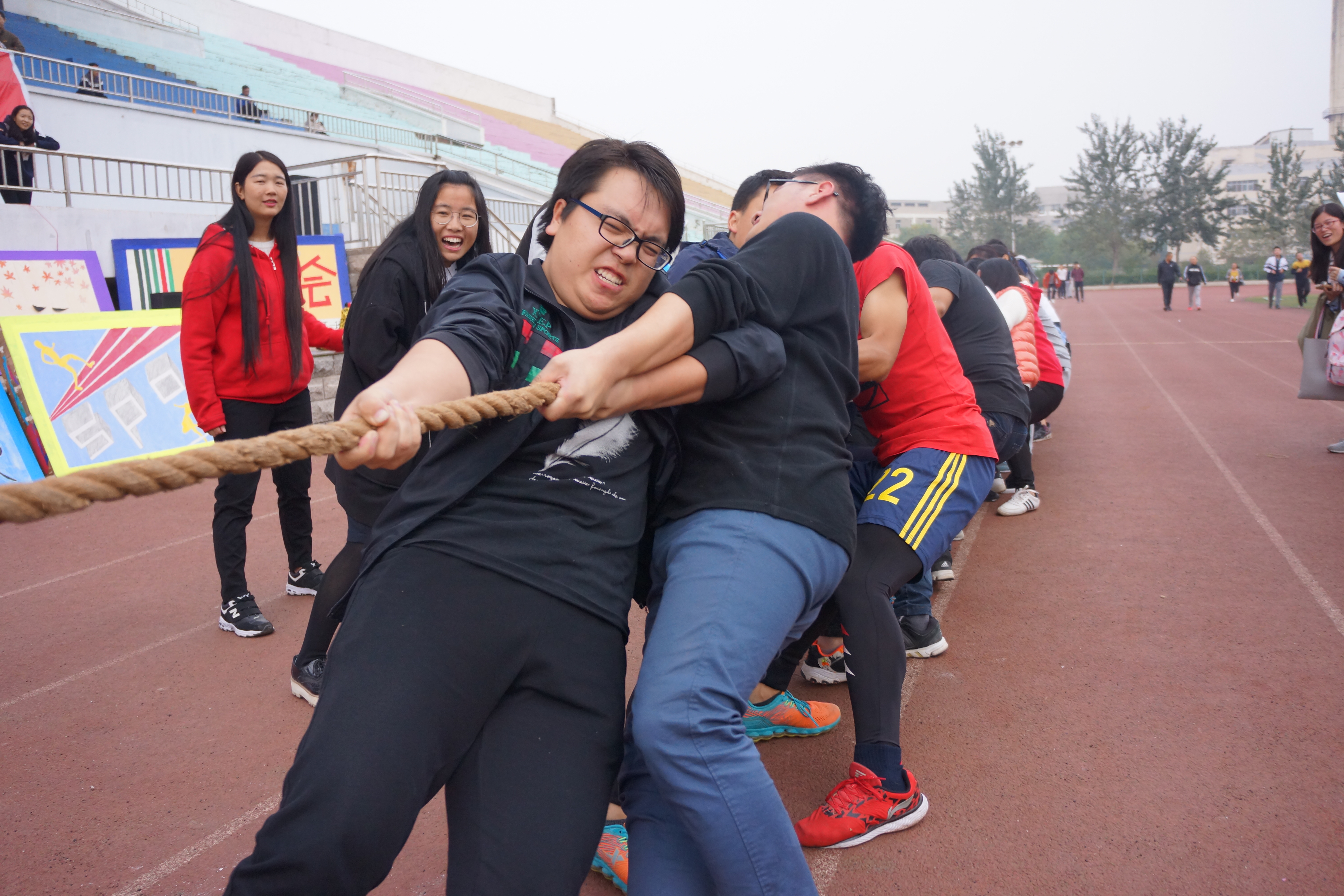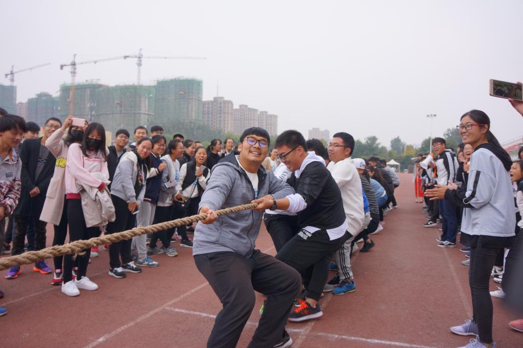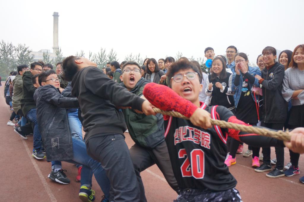 稍后,运动会举行了最后一项高潮比赛——拔河。此次比赛以年级为单位,比赛由党委副书记宋立华主持并担任裁判。随着一声哨响,选手们劲往一处使,心往一处靠,迅速点燃赛场气氛,各年级啦啦队也不甘示弱,纷纷为自己的队伍呐喊助威。“加油,加油!”“一二,喝!”各自喊着各自的口号,双方士气只涨不降,场上的加油声一浪比一浪高,呐喊声响彻云霄。经过几轮角逐,比赛以17级同学夺得冠军结束,15级、16级也表现优异。青春的脚步,青春的气息,青春的活力,深深震撼了场上场下的每一个人。“恰同学少年,风华正茂”“数风流人物,还看今朝。”此次比赛增强了化学化工学院全体同学的凝聚力。
