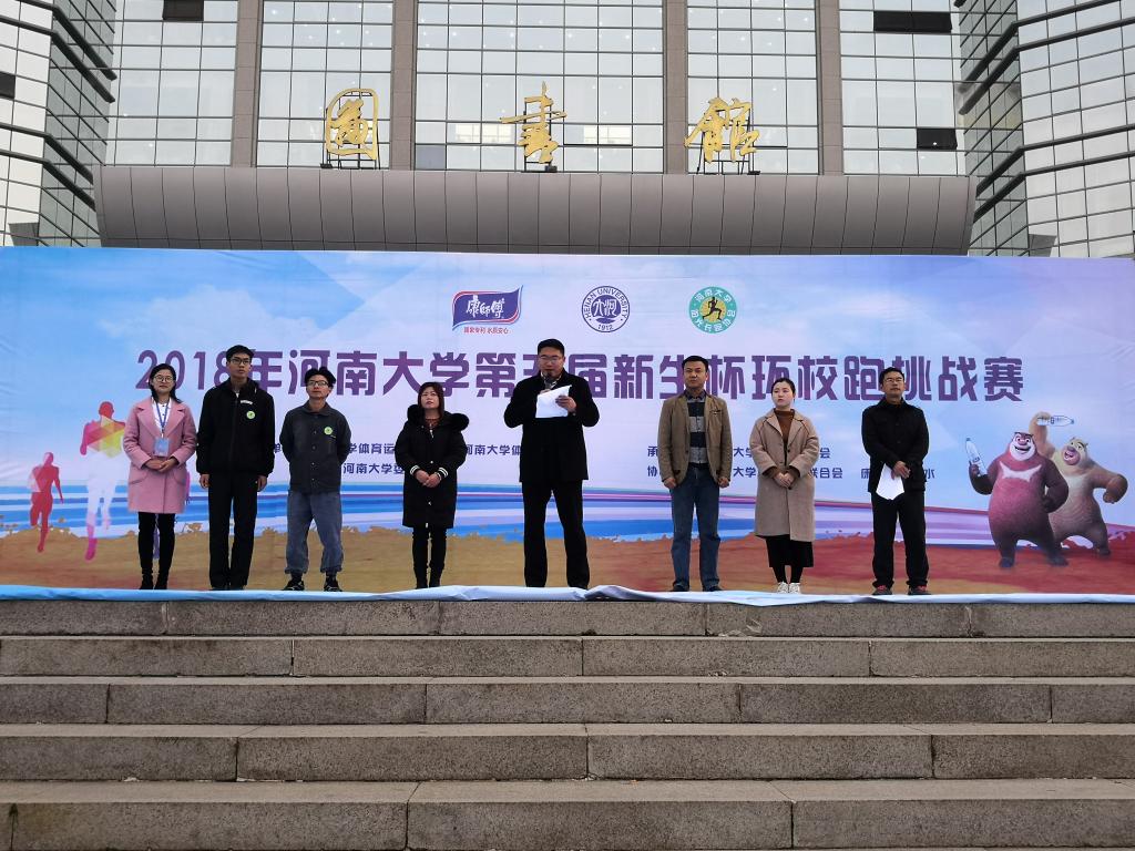 为丰富大学校园文化生活,提升当代大学生的身体素质,鼓励更多学生参与体育锻炼,我校于11月24号上午在图书馆前隆重举办第五届新生杯环校跑挑战赛。校体委主任、体育学院院长张大超,体育学院副院长牛云杰等领导出席了开幕式。
