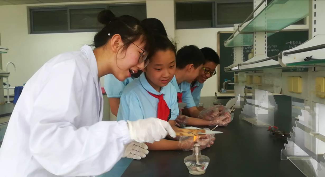 基础实验中心为他们讲解有趣的小实验、为他们展现化学的美丽、为他们打开新世界的大门。