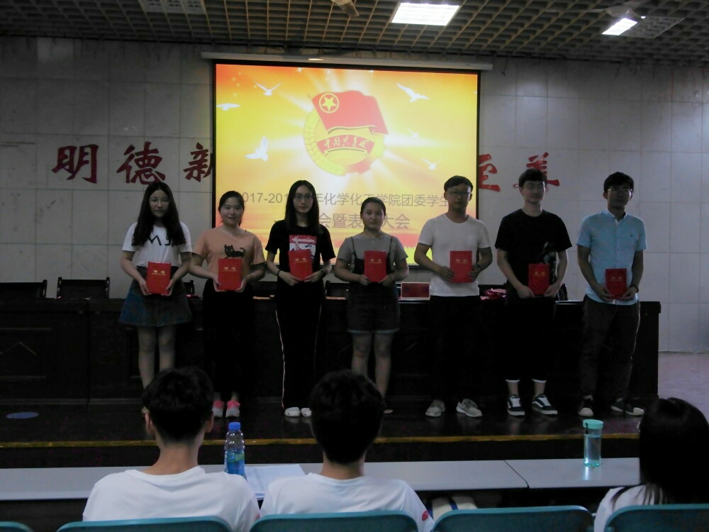 接着,团委副书记李敏洁宣读2017-2018学年学生会优秀部长及优秀部员名单,2017届主席团为优秀部长及优秀部员颁奖。郭佳为2017届主席团和部长层成员颁发聘书,宣布2018届团委学生会主席团成员。最后,李红涛宣布会议结束。