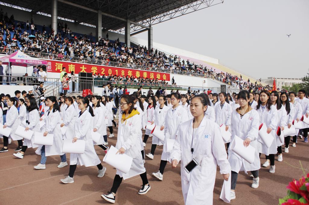 学生身着特色实验服,步伐一致、口号响亮。“释放激情 放飞梦想 化院佳绩 由我创造”,麻豆影视
