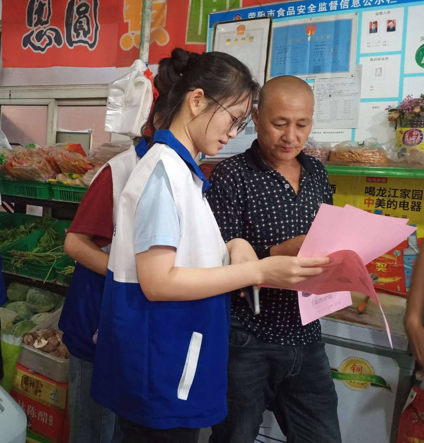 (团队成员高莫愁在张庄超市对顾客开展重金属污染的宣传)