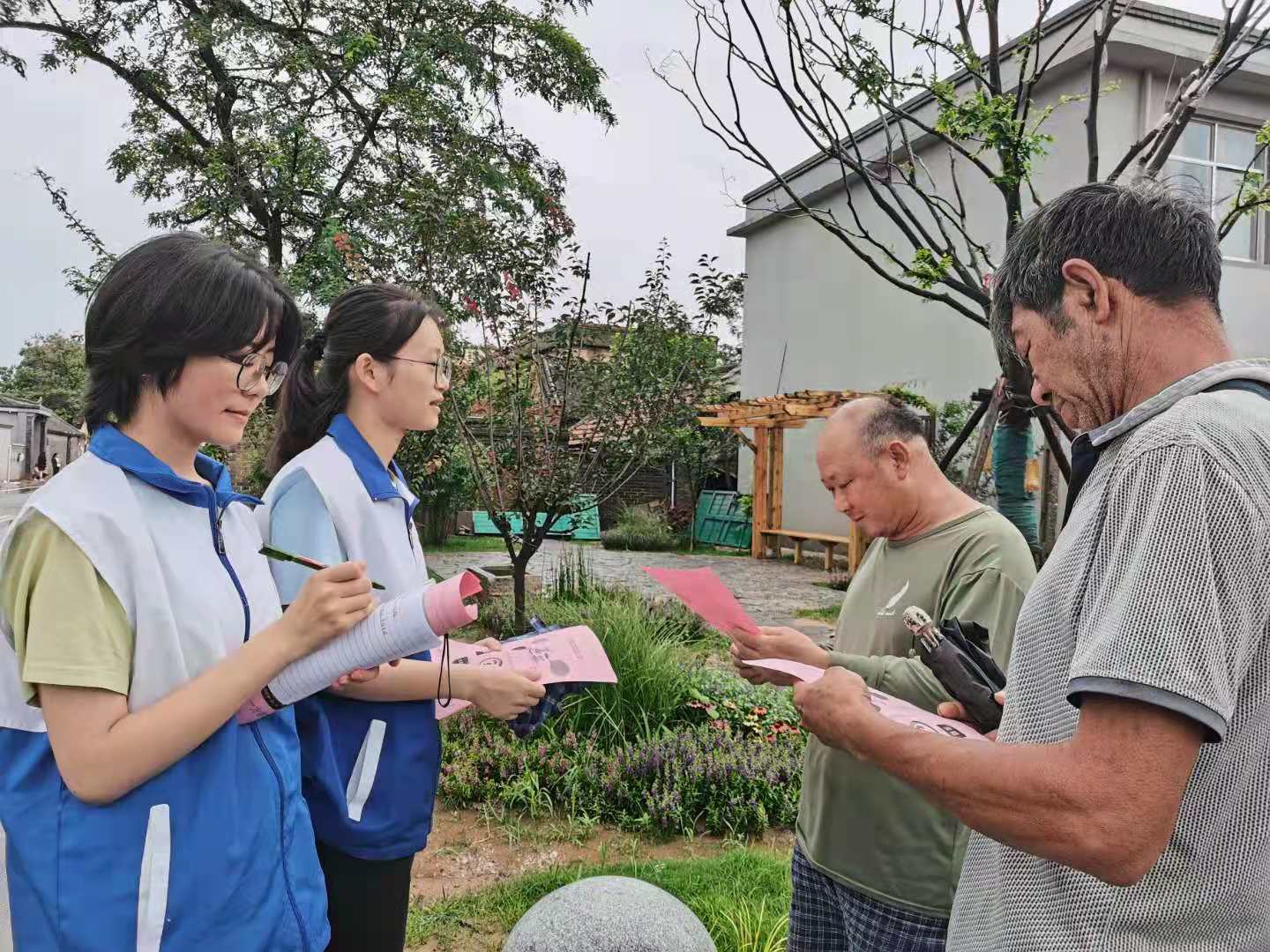 (团队成员高莫愁、裴书杨在张庄村开展重金属污染宣讲活动)